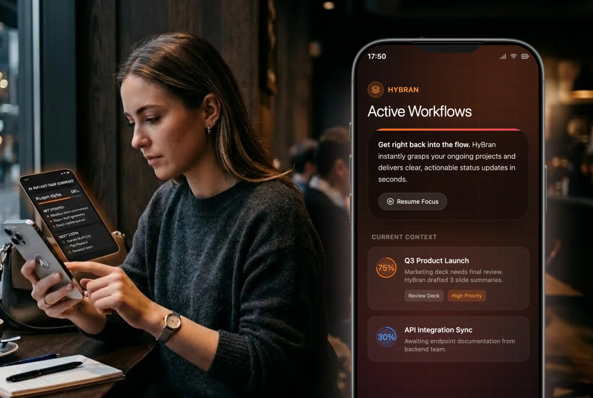 Effortlessly connect the dots. On your OpenClaw phone, HyBran seamlessly synthesizes your activity across messages, emails, and documents.
