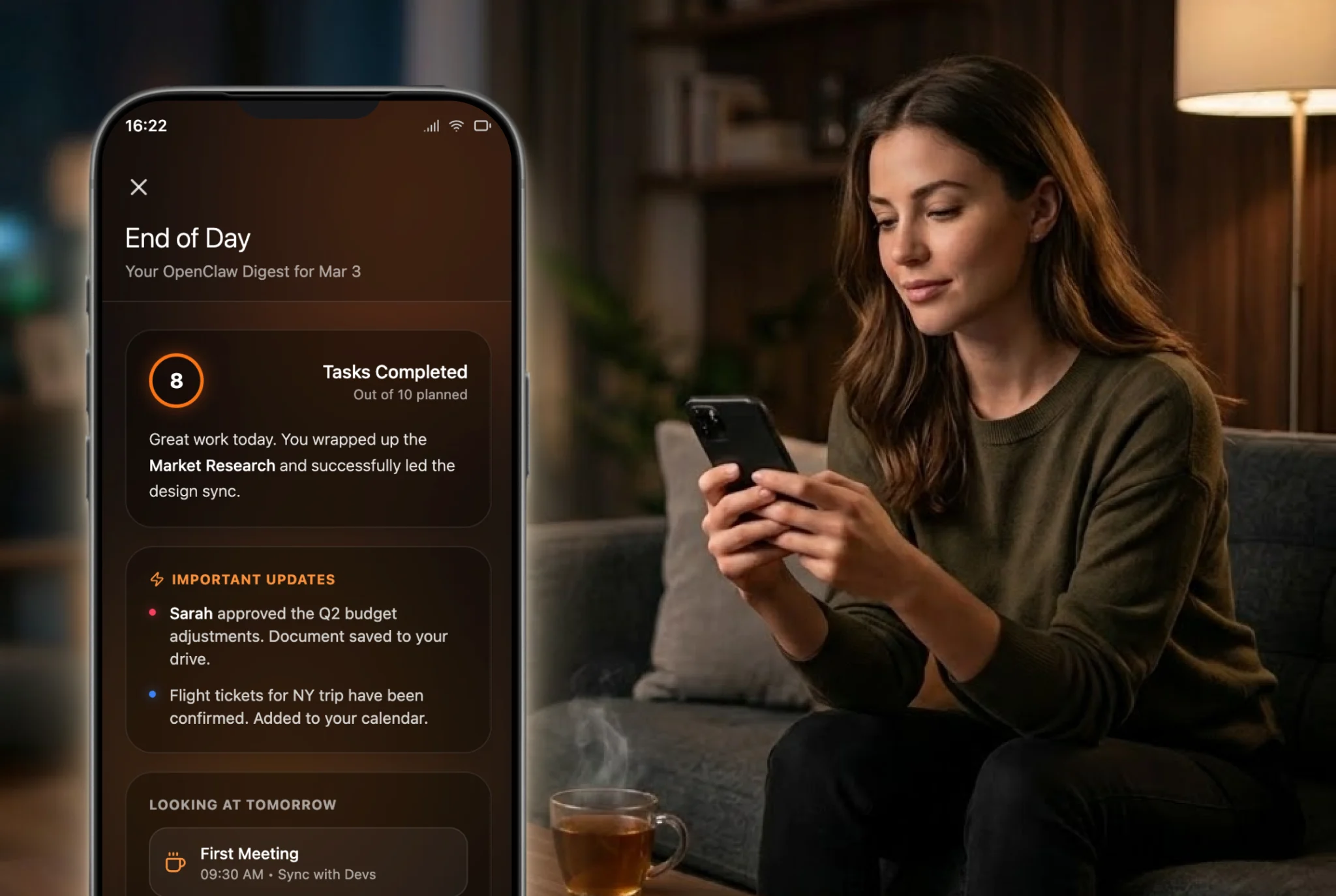 Skip the countless apps and notifications. Your self-evolving phone delivers one intelligent update that keeps you informed in seconds.